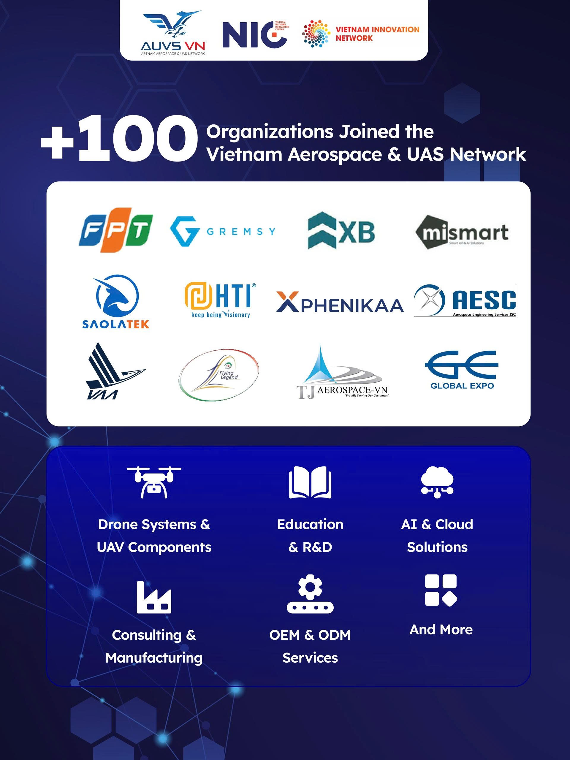 Được biết, AUVS Việt Nam là một trong ba mạng lưới công nghệ chiến lược quốc gia được bảo trợ trực tiếp bởi NIC, với sứ mệnh thúc đẩy toàn diện ngành công nghiệp UAV và khai thác tiềm năng của Kinh tế tầm thấp (Low-altitude Economy).